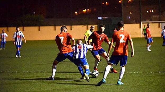 CENTROCAMPISMO. El duelo dirimido en el Chano Cruz estuvo marcado por la circunstancia de que la mayor parte de las acciones se desarrollaron en la parcela central. Las llegadas a una y otra área eran muy esporádicas, y cada vez que se producían Álvaro y Daniel estaban al acecho para evitar que el esférico acabara en el fondo de la portería de sus respectivos equipos.