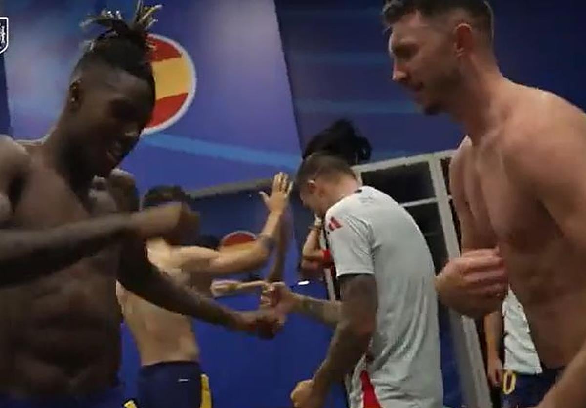 La selección española celebró en el vestuario y en la guagua su pase a la final de la Eurocopa tras doblegar a Francia (2-1)