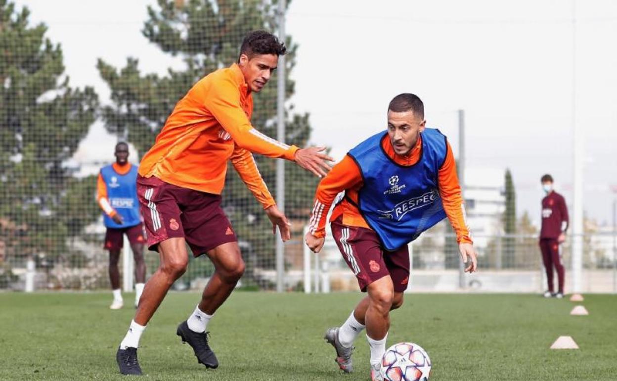 Varane y Hazard, en el entrenamiento de este lunes. Foto: Efe | Vídeo: Atlas