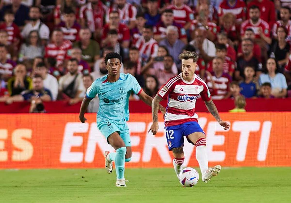 Con esos mimbres se gestó una reacción plagada de sobresaltos. El Barça movió al Granada de lado a lado como un acordeón, pero a medida que los culés avanzaban se hacían más frágiles en la retaguardia, allí donde estaba al acecho Bryan Zaragoza. El joven malagueño, de apenas 22 años, es pura dinamita y él solito se bastó para hacerle un ocho a Koundé, al que bailó a toda velocidad con dos recortes fabulosos antes de definir con el exterior para delirio de una afición que se frotaba los ojos al ver el marcador y sobre todo a su nueva joya. El Granada soñaba y el Barça vivía una pesadilla que tuvo un capítulo más con la lesión muscular de Koundé. Ya sin el galo, su equipo encontró el gol en un balón embarullado en el área que fue a parar a Lamine Yamal, para que el futbolista de 16 años recortara distancias antes del descanso y cerrara la primera mitad convertido en el goleador más precoz de la historia de la Liga.