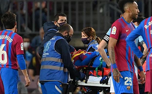 Araujo, evacuado del Camp Nou por un golpe en la cabeza