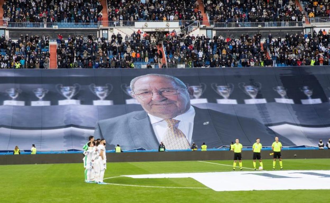 En el minuto 11 del partido Real Madrid-Elche la afición del Bernabéu también estalló en aplausos como tributo al exfutbolista cántabro protagonista de una de las páginas más gloriosas del equipo merengue, que era presidente de honor de la entidad.