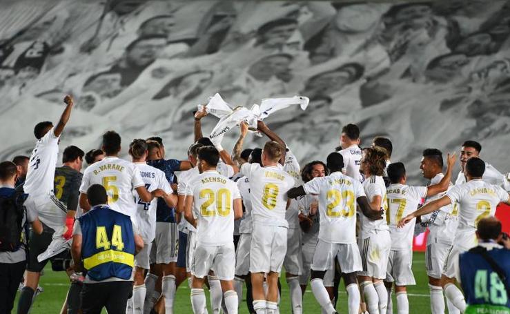 Todo es extraño en esta Liga de casi un año de duración a causa del largo parón por el coronavirus. El confinamiento, el regreso con los estadios vacíos, un histórico esprint final con diez victorias consecutivas del Real Madrid que le permitió cantar su 34º alirón en el torneo de la regularidad y unas celebraciones sin boato. Por cuestiones de sentido común y prevención sanitaria, no pudo haber festejos en Cibeles ni de hinchas, ni de jugadores, ni el clásico autobús descapotable con las estrellas, ni tampoco la tradicional visita a las instituciones. Todo se quedó en casa, en el dulce hogar del estadio Alfredo Di Stéfano y en esa Ciudad Deportiva de Valdebebas que es santo y seña de la etapa, con muchas luces y algunas sombras, de Florentino Pérez.