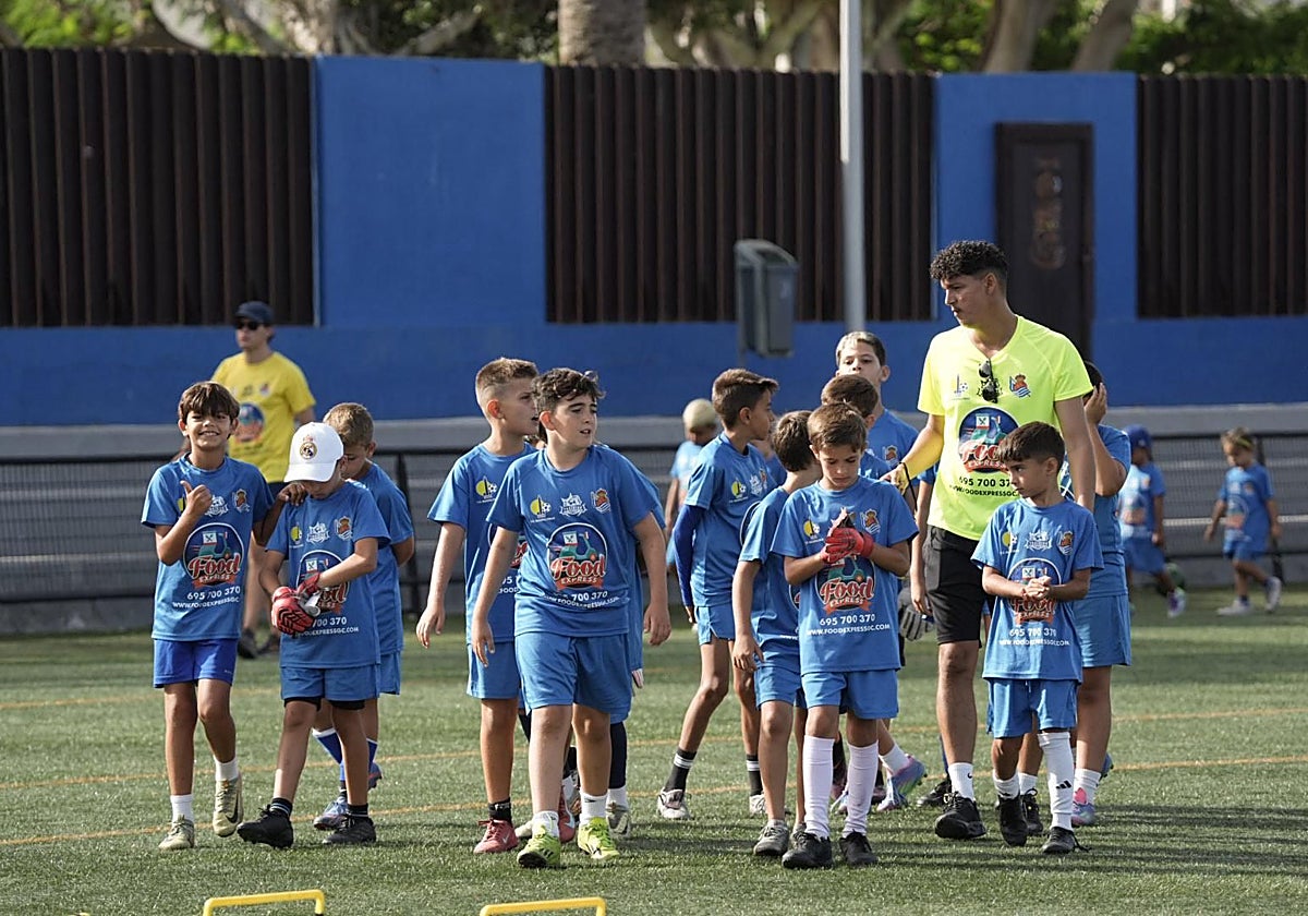 Bajo la mirada atenta de Adrián Díaz y Odiseo Castro, que coordinan al resto de entrenadores, y también con la cercanía y atención de Adrián Pollo, exjugador de la UD Las Palmas y Atlético de Madrid, entre otros equipos, los más pequeños se lo pasan en grande con el balón de por medio.