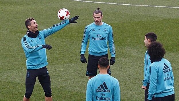 Con frío intenso en la capital de España, 1 grado, los jugadores madridistas se refugiaron en el gimnasio para el inicio de la sesión de trabajo, según informó el club a los medios para explicar la casi hora de retraso.