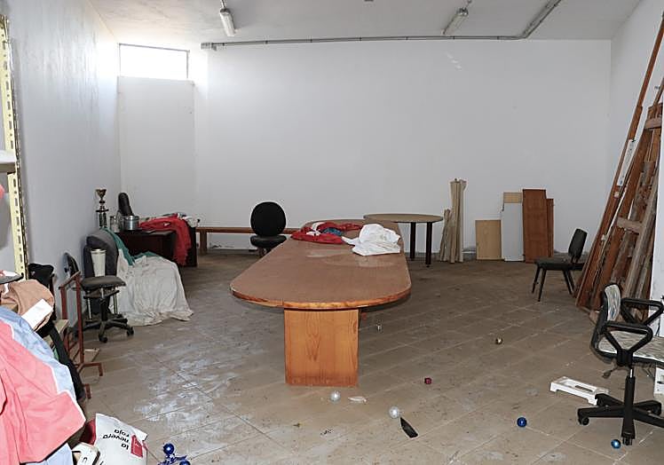 Se da cuenta que no hay cables de la luz, por tanto, no existe salvo si se conecta a un generador; que los vestuarios y los baños, están sin griferías, al margen de la suciedad. También al gimnasio le falta la mitad del mobiliario y las oficinas del club, como la sala de trofeos y demás dependencias, estaban revueltas y en mal estado. «Es increíble el abandono de la instalación, cuando antes fue modélica.