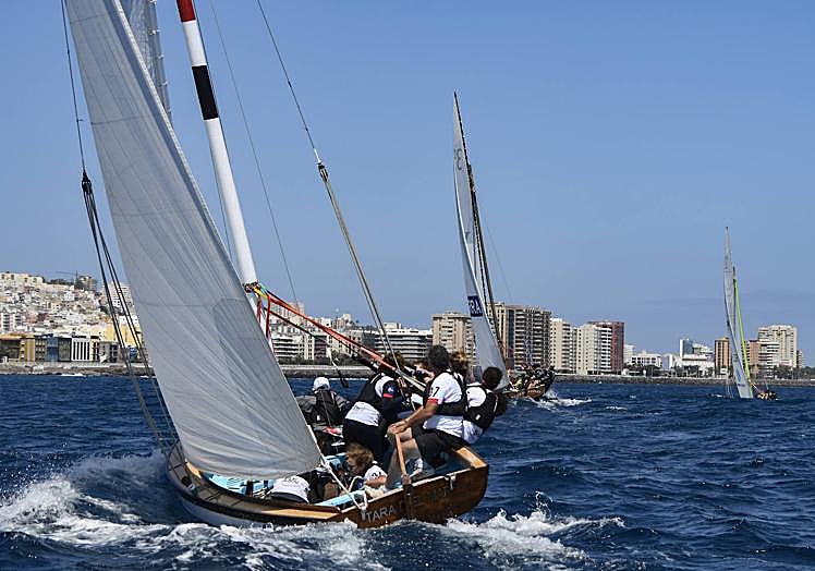 La Vela Latina Canaria volvió a navegar al mediodía de este domingo por la bahía de Las Palmas de Gran Canaria.El Campeonato Aguas de Teror se estrenó con una interesante primera jornada que ofreció seis pegas destacadas.