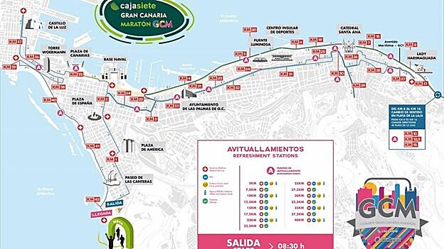 El trazado sufre variaciones por las obras de la MetroGuagua en Las Palmas de Gran Canaria. El maratoniano volverá a tener como principal referencia la Avenida Marítima hasta La Laja, mientras que en el interior se encontrará algunos cambios en la calle Alicante junto a los Juzgados y en la subida a Tafira. Por su parte, el corredor del medio maratón tendrá un circuito más llamativo y con menos kilómetros en la Avenida Marítima, ya que el giro lo tendrán a la altura del cementerio de Las Palmas y no en Hoya de la Plata como el año pasado.