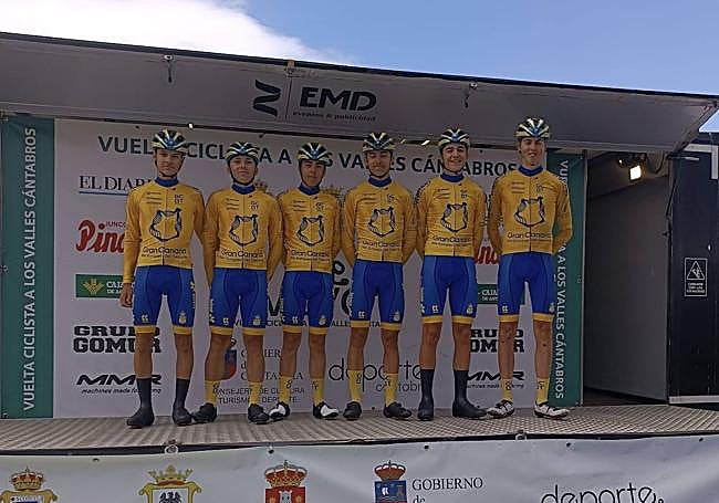 El equipo junior de carretera del Gran Canaria Bike Team se encuentra desde el jueves en tierras cántabras participando en la III Vuelta Ciclista a los Valles Cántabros. El viernes corrió la primera etapa y este sábado, la segunda etapa. Con muchas ilusiones el equipo ha recuperado a Daniel Lado Nuez, gran corredor teldense, que en marzo sufrió un grave accidente y tras una difícil operación y dos meses de baja ha tenido un impresionante regreso.