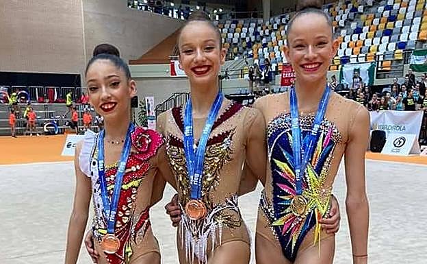 Inka Wilke se proclamó campeona de España en la categoría infantil con el ejercicio de mazas, Lucía Oltra se colgaba el bronce en la categoría infantil con el ejercicio de cuerda y Náyade Pérez conseguía dos medallas de bronce en la categoría junior con los aparatos de cuerda y cinta.