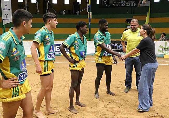 Se mostró muy interesada por la cultura canaria y por la historia de lucha canaria, por lo que se le explicó algo de la misma, cómo eran los aborígenes isleños y la lucha de nuestros antepasados, donde los valores eran una de las señas de identidad.