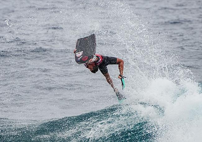 El grancanario Alberto Pérez y el francés Louka Zaniotto disputarán la final júnior tras una jornada de gran nivel técnico y condiciones mejores de lo esperadoLa quinta jornada del Gran Canaria Frontón King ofreció este jueves un espectáculo a la altura del tramo decisivo del campeonato. Con mejores condiciones de lo previsto durante parte de la jornada al menos -olas limpias, con buena forma y viento favorable- la acción avanzó en ambas categorías, dejando definida la final júnior y reduciendo la pelea por el título mundial absoluto a los tres principales aspirantes: Uri Valadão, Armide Soliveres y Pierre-Louis Costes.