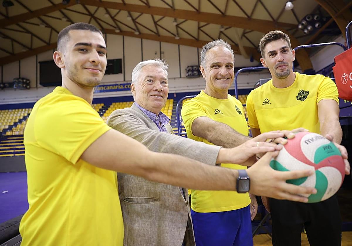 Juan Ruiz, presidente del CV Guaguas, Sergio Miguel Camarero (entrenador) y los jugadores Unai Larrañaga y el capitán, Jorge Almansa, fueron las voces autorizadas, este miércoles, en la previa de la Copa del Rey ante los medios en el Centro Insular de Deportes.