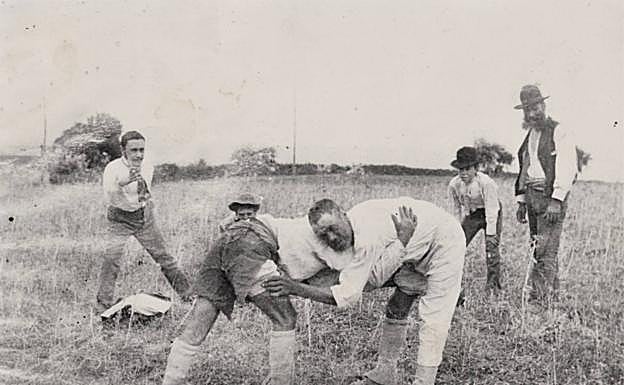 En 1947 la revista 'La Aurora' publicaba una historia sobre una agarrada, con dibujo incluido. «Dos campeones ocupan el terrero; el uno es bajo, pera fornida, denota su presencia suma viveza, es del partido de abajo. El otro es alto y delgado, nótesele mucha flexibilidad en los miembros; es del partido de arriba». Así comenzaba la historia y era un ejemplo de lo que la lucha significaba para los isleños.
