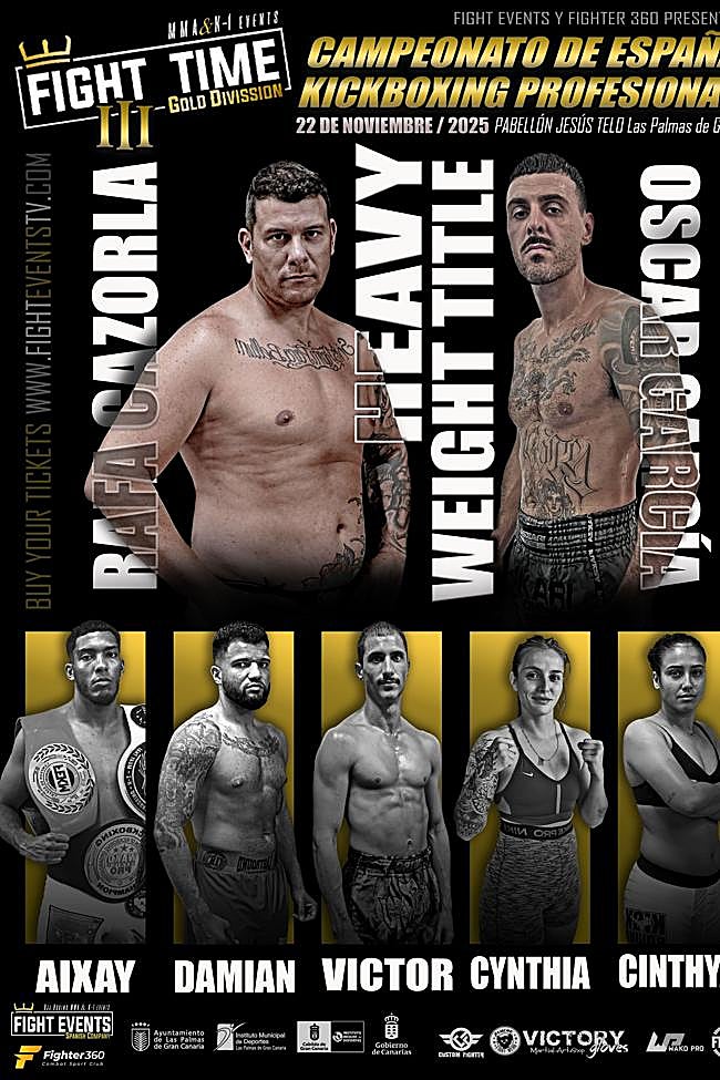 El pabellón Jesús Telo de La Isleta será el escenario, el próximo sábado, de una noche épica con la tercera edición de Fight Time, el evento insignia de Fight Events, que en esta ocasión pondrá en juego el título oficial del Campeonato de España de Kickboxing Profesional.
