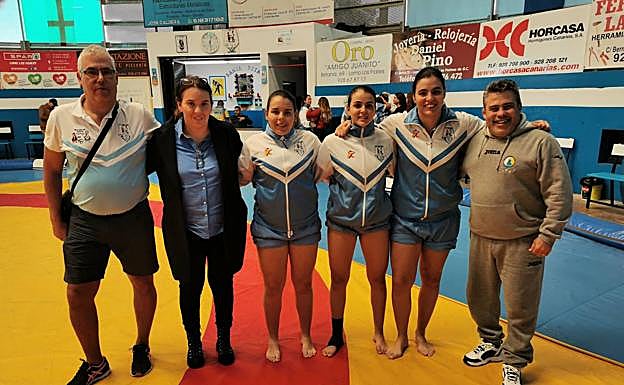 La competición femenina en grancanaria mantiene tras la cuarta jornada un triunvirato en cabeza con Santa Rita Autos Roso, Roque Nublo y Vecinos Unidos Agua de Firgas que cuentan por victorias su luchadas.
