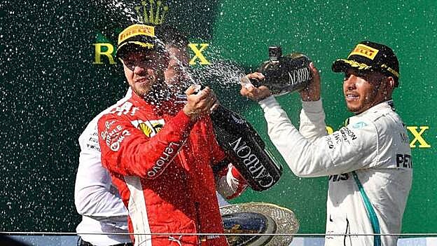 El espectacular y excéntrico campeón inglés relegó al segundo y al tercer puesto a los dos pilotos de Ferrari, Vettel (al que ahora supera en 24 puntos) y el finés Kimi Raikkonen; que minimizaron daños al rebasar a Valtteri Bottas, -compatriota del anterior y compañero de Hamilton-, que acabaría quinto, con problemas de degradación en sus neumáticos traseros, a falta de cinco giros para el final de la carrera. En la que el español Fernando Alonso (McLaren) festejó su trigésimo séptimo cumpleaños con el octavo puesto, justo delante de su compatriota Carlos Sainz (Renault).