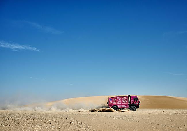 En una prueba de resistencia y habilidad de navegación, el equipo del Dakar Por La Vida ha superado con éxito la quinta etapa del rally. Después de enfrentarse a un sinfín de dunas y una extensa travesía por la arena, el equipo y su camión emergen indemnes y listos para continuar la competición.