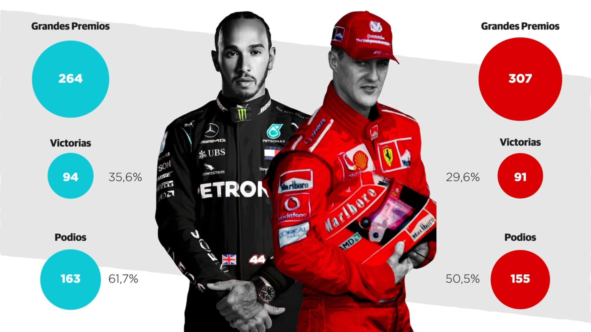 Al proclamarse campeón en Turquía, Lewis Hamilton igualó los siete títulos de Michael Schumacher, al que ya superaba en victorias, podios y ‘poles’.