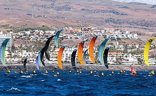 La playa de Las Burras recibe a los 'riders' con unas condiciones inmejorables para los Fórmula 1 del mar, ofreciendo una batalla liderada por Francia