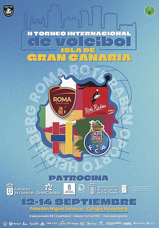 El Torneo se disputa el fin de semana del 12 al 14 de septiembre en el Pabellón Miguel Solaesa del Colegio HeidelbergEl próximo fin de semana del 12 al 14 de septiembre el pabellón Miguel Solaesa del Colegio Heidelberg acogerá el espectáculo del vóley femenino con la segunda edición del Torneo Internacional Isla de Gran Canaria organizado por el conjunto local del Heidelberg Volkswagen.