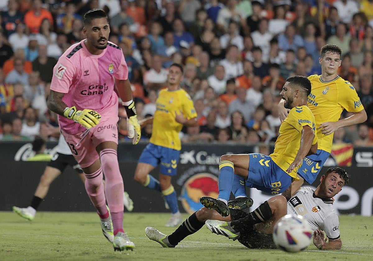 Si en el estreno frente al Mallorca dio el cante la incapacidad de llegar, en Mestalla, pese a la puesta en escena de Munir, con Sandro y Viera para completar tridente, se reprodujo lo mismo. El primer y único tiro entre palos llegó en el descuento y con un latigazo lejano de Pejiño sin complicaciones añadidas. Y Valles volvió a salir destacado, justificando sus habichuelas como nadie. Le falta a Las Palmas. No espera por nadie la categoría y ya lo van asumiendo los jugadores.
