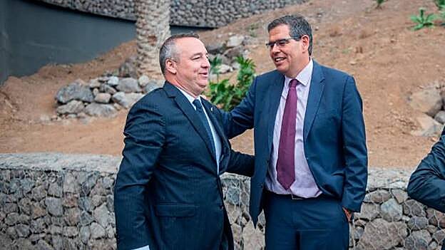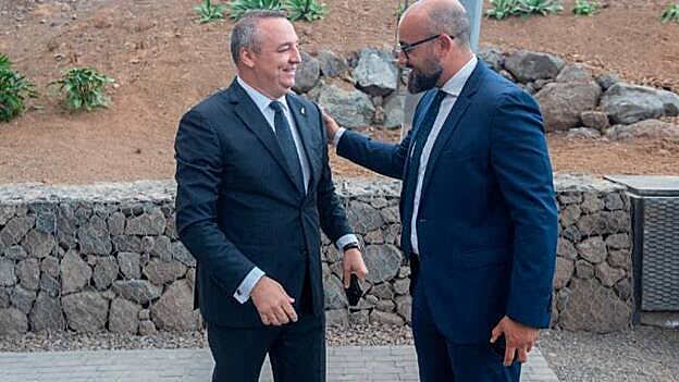 Totalmente volcado con el mundo del deporte, el concejal de Deportes del Ayuntamiento de Las Palmas de Gran Canaria, Aridany Romero, acudió ayer a la inauguración de la ciudad deportiva de la UD, donde jugarán, aparte de los filiales amarillos, cientos de equipos de los clubes de la capital grancanaria. Romero aparece en la imagen dialogando con el presidente amarillo, Miguel Ángel Ramírez.