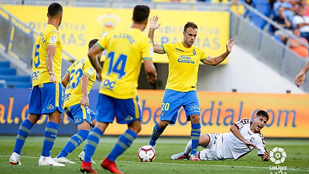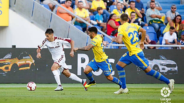 Con un ritmo desbordante comenzó el partido entre la UD Las Palmas y el Albacete en un soleado Estadio de Gran Canaria. A pesar del dominio inicial de los visitantes, los pupilos de Jiménez tuvieron tres ocasiones claras de gol en los primeros quince minutos del encuentro. Una gran jugada de Fidel por la derecha, acabó en un gran centro que consiguió rematar el siempre presente Rubén Castro, obligando a Tomeu Nadal a despejar a córner el disparo a bocajarro. Tan solo unos minutos después, y de nuevo con Castro como protagonista, la UD Las Palmas pudo marcar el primero tras otro latigazo local, que demuestra que necesita muy poco fútbol para crear peligro. En el minuto 12, y con el Albacete asediado, Juan Cala remató un potente cabezazo que milagrosamente no acabó en gol, aunque el central amarillo pidió penalti por manos del central visitante.