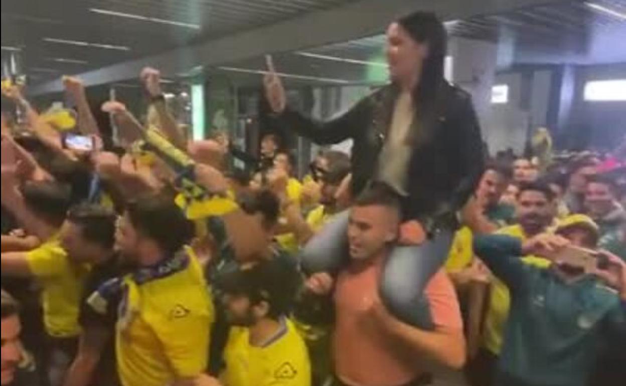 La pasión amarilla se desbordó en el aeropuerto de Gran Canaria a la llegada en la madrugada de este lunes del equipo.