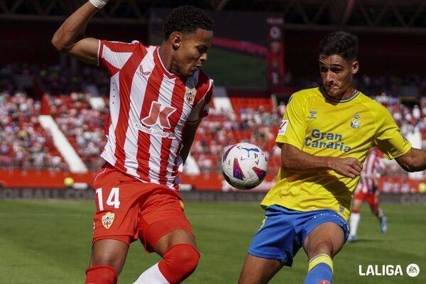 Agitó el once Pimienta con la entrada de Maxi Perrone y Marvin, en detrimento de Enzo y Pejiño. De resto, todo igual. Con el Almería necesitado, Las Palmas aguardaba a la espera de hacerse con la pelota y encontrar espacios en el combinado andaluz. En una de esas, y cuando aún no se había roto a sudar, una subida por la izquierda de Sergi Cardona sembró el nerviosismo en la hinchada local.