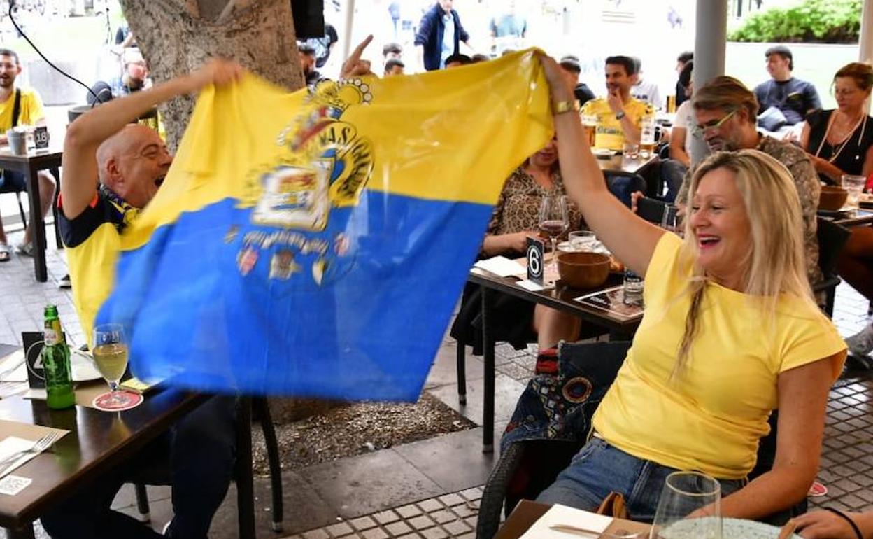 La hostelería hace su agosto con partidos como el de la Unión Deportiva Las Palmas ante el Sporting de Gijón de este domingo. Y mucho más si es en un lugar emblemático para la afición amarilla como la Plaza de España, lugar de celebración de los ascensos.
