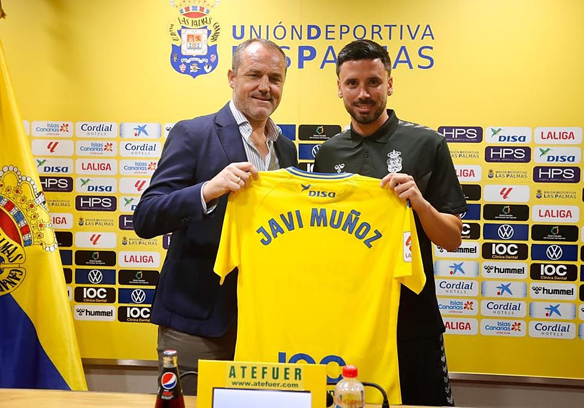 El centrocampista de Parla analizó la temporada pasada del club y se muestra «muy ilusionado» con su incoporación al equipoLa UD Las Palmas ya ha presentado a su primer fichaje de cara a la próxima temporada, el centrocampista Javi Muñoz. Tras haber terminado el primer entrenamiento del curso, el equipo amarillo presentó al jugador de Parla, el cual se mostró «muy ilusionado» y llega procedente del Eibar y firma por dos años.