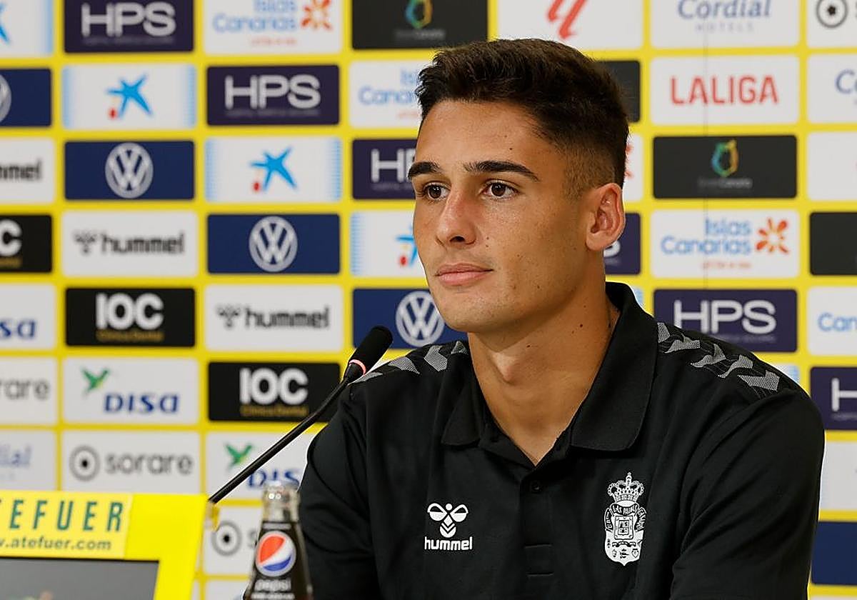 El futbolista de la UD Las Palmas Sergi Cardona habla este jueves en la rueda de prensa previa al encuentro de este fin de semana ante el equipo de Xavi HernándezCANARIAS7