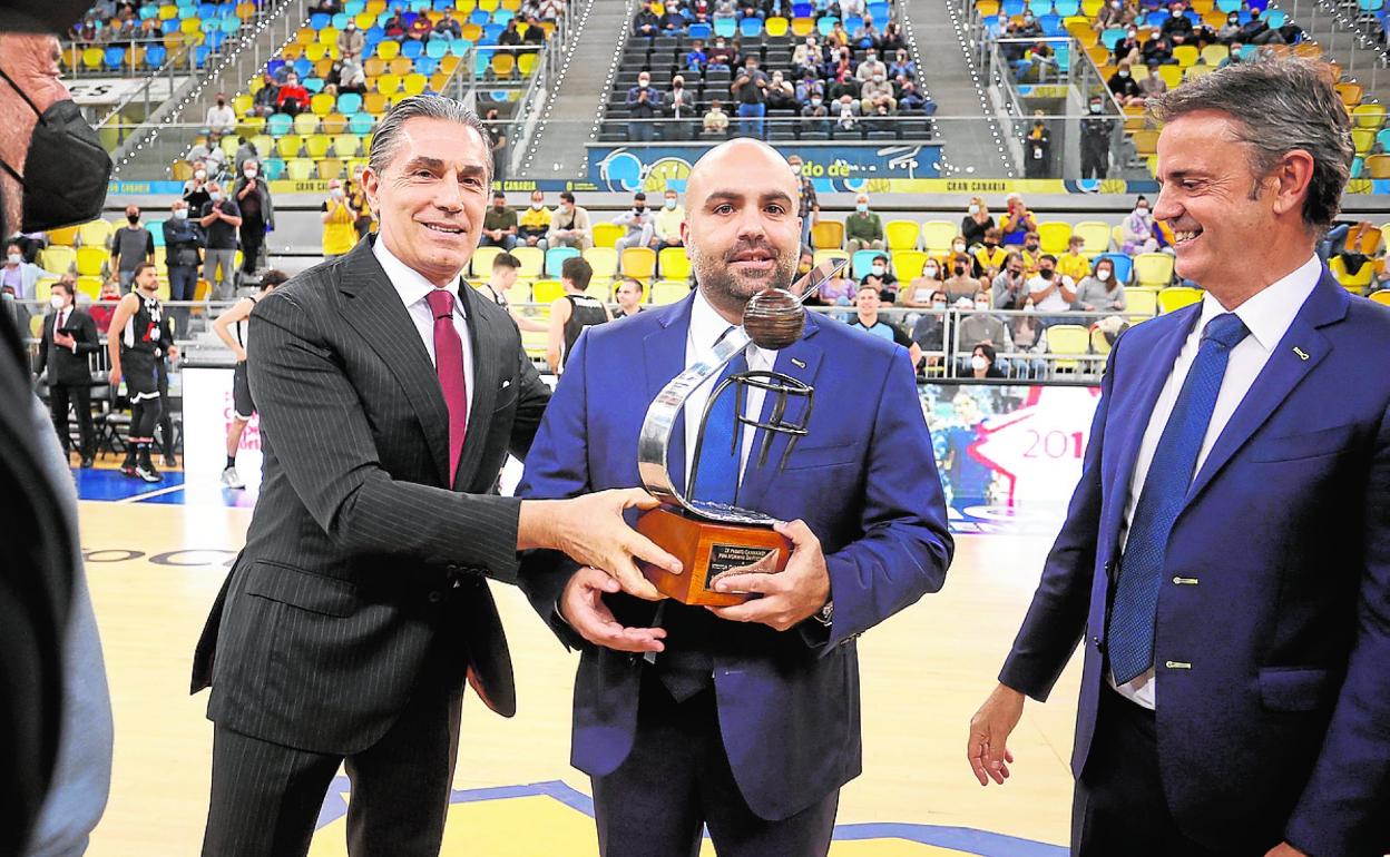 Exhibe el IX Premio CANARIAS7-Pepe Moriana con la presencia del histórico fundador del Granca que apadrina la distinción y Sergio Scariolo