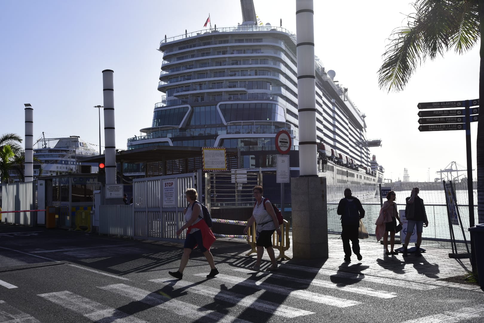 Cuatro cruceros en un mismo domingo y unos 8.000 cruceristas entrando y saliendo de esos barcos y paseando por la ciudad y la isla. Son los números y la estampa que presenta este 23 de noviembre Las Palmas de Gran Canaria de la mano de su puerto y a esa cifra hay que añadir unos 3.000 trabajadores a bordo de los navíos.
