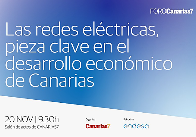 CANARIAS7 celebra el próximo jueves 20 de noviembre a partir de las 9.30 horas el Foro 'Las redes eléctricas, pieza clave en el desarrollo económico de Canarias', que se celebrará en el Salón de Actos de la sede de CANARIAS7 en el Sebadal, en Las Palmas de Gran Canaria.