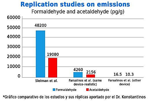 Las políticas escépticas con las nuevas alternativas están guiadas por interpretaciones, muchas veces erróneas, de la reducción del daño y un uso selectivo de las pruebas. Por ello el Dr. Konstantinos Farsalinos, investigador de la Universidad de Patras, replicó varios estudios que afirmaban una mayor emisión de tóxicos por parte de los cigarrillos electrónicos, sin embargo, sus réplicas obtuvieron resultados favorables para los productos de vapeo que contradecían a los estudios originales.