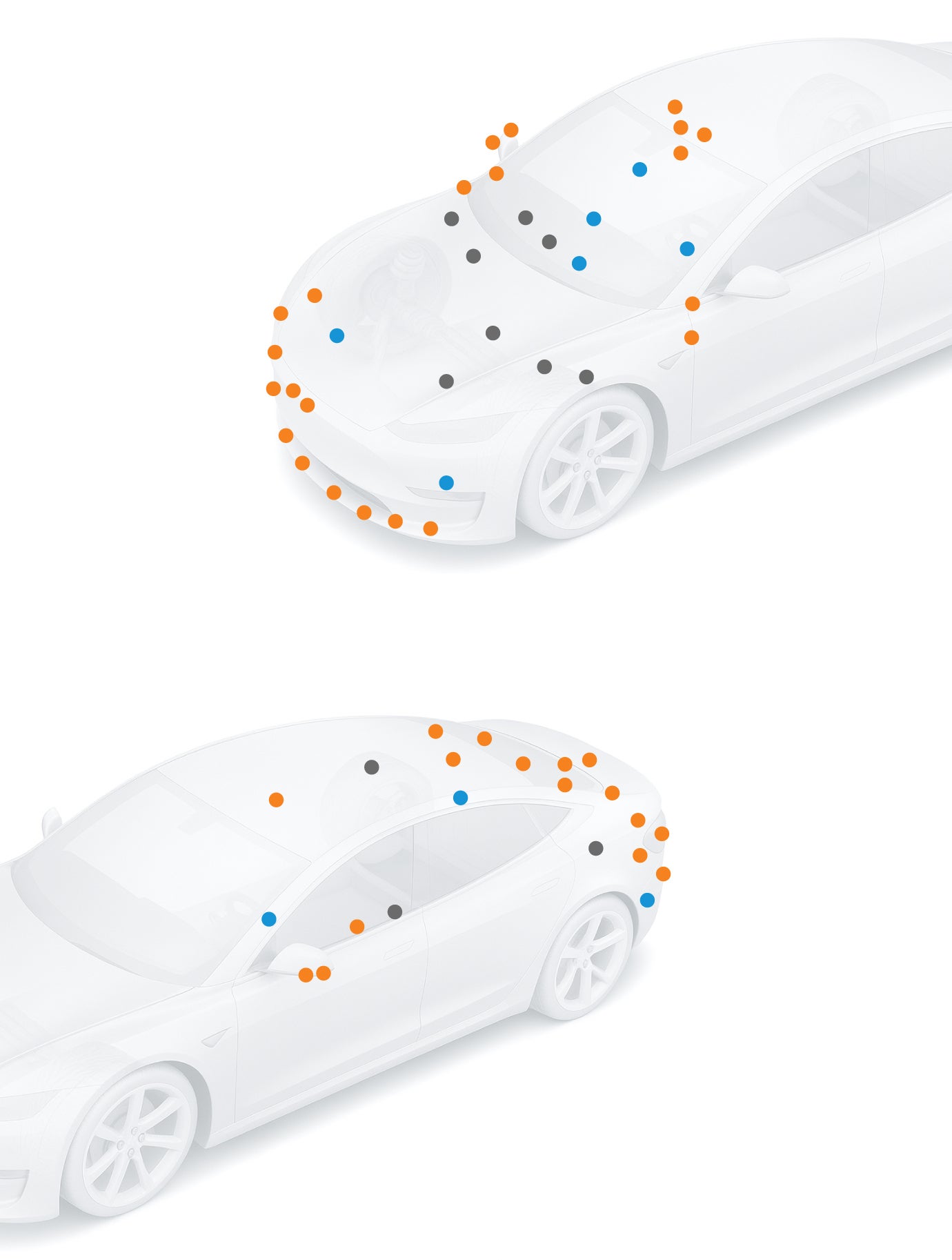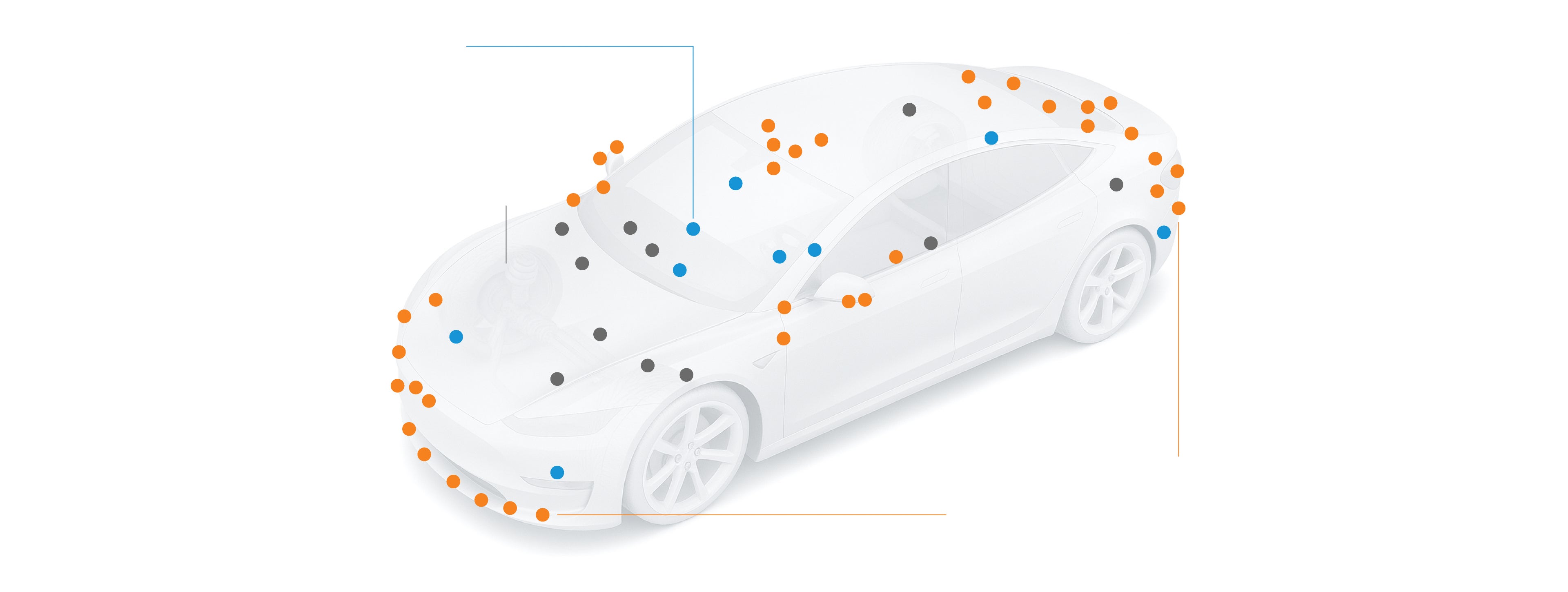 Los chips que hay en los sensores son los encargados de avisar cuando un coche se aproxima, por eso se reparten, especialmente, por la parte delantera y trasera del vehículo