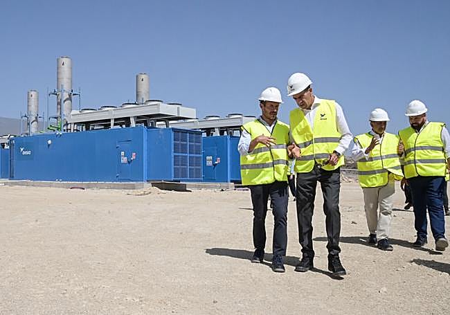 El consejero de Transición Ecológica y Energía, Mariano Hernández Zapata, el subdelegado del Gobierno, Javier Plata, junto a otros representantes de Red Eléctrica de España, y autoridades locales, visitaron las obras de la planta de generación de emergencia, promovida por DISA en Granadilla de Abona (Tenerife).
