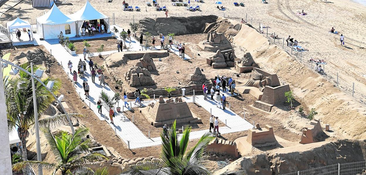 El belén de arena abrió a comienzos de mes sus puertas en la playa de Las Canteras para dar forma a la Navidad en la ciudad, en una edición «con alma» que cuenta con referencias a La Palma, a los oficios tradicionales y a los maestros con las obras efímeras de diez escultores.