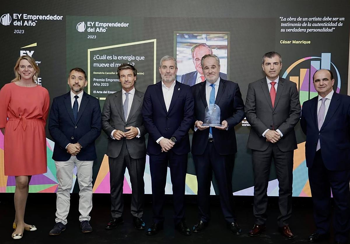 Demetrio Carceller Arce, presidente de Disa Corporación, ha sido proclamado ganador del Premio Emprendedor del año 2023 en las Islas Canarias, en su XXVII edición, en un almuerzo celebrado este lunes en Santa Cruz de Tenerife. A la gala del Premio Emprendedor del Año han asistido numerosos representantes del mundo empresarial e institucional de Canarias. Entre ellos, Fernando Clavijo, presidente del Gobierno de Canarias, encargado de entregar el premio. Por parte de EY, han participado en el acto arropando al ganador, Federico Linares, presidente de EY España; Narciso Serratosa, socio responsable de las oficinas de EY en Canarias; Hildur Eir Jónsdóttir, socia directora de Assurance de EY; José Luis Risco, socio responsable de Talento de EY; así como Pablo Sanz, socio de EY y uno de los responsables del Premio Emprendedor del Año a nivel nacional.