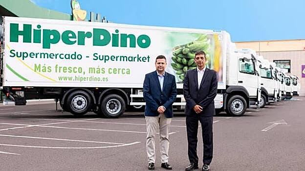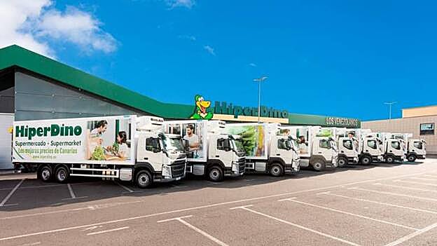 Volcanarias Servicenter, empresa concesionaria de la marca Volvo en Canarias de vehículos industriales, camiones y guaguas, ha hecho entrega a HiperDino de una flota de ocho nuevos camiones destinados a la distribución de productos en los distintos puntos de venta.