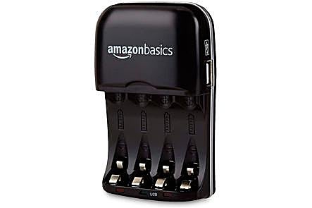 Amazon Basics - Cargador de pilas de Ni-MH AA y AAA con puerto USB. Rebajado a 11,36 euros.