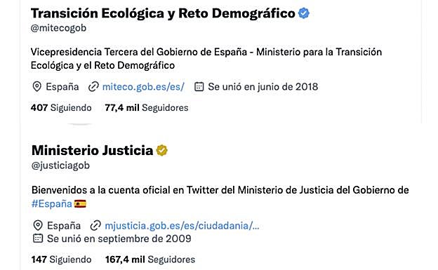 El problema es que hasta ahora este servicio está en pruebas y se están dando casos curiosos, con cuentas oficiales de distintos ministerios en azul y otros en dorado, así como las cuentas de medios de comunicación. Por ejemplo, la cuenta oficial del Ministerio para la Transición Ecológica tiene un 'check' azul, mientras que el de Justicia presenta una verificación de color dorado.