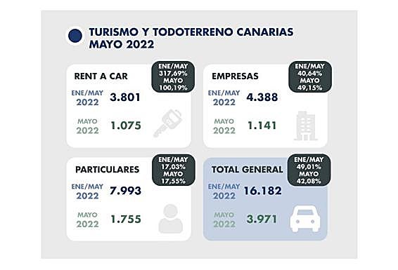 Las ventas de turismos y todoterreno crecen un 42% respecto a mayo de 2021, con gran peso de las matriculaciones del Rent a car que aumentan un 100%canarias7