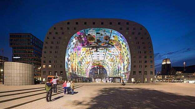 En Rotterdam (Países Bajos) existe un moderno inmueble denominado Markthal Rotterdam, que se inauguró en octubre de 2014. El complejo, que tiene forma de un arco inmenso o de una herradura de caballo, según se visualice, es de carácter mixto: alberga un gran mercado techado en el que hay decenas de puestos y en los que se venden productos como pescado, frutas y pan. También hay restaurantes, bares, un supermercado, residencias y un aparcamiento subterráneo.