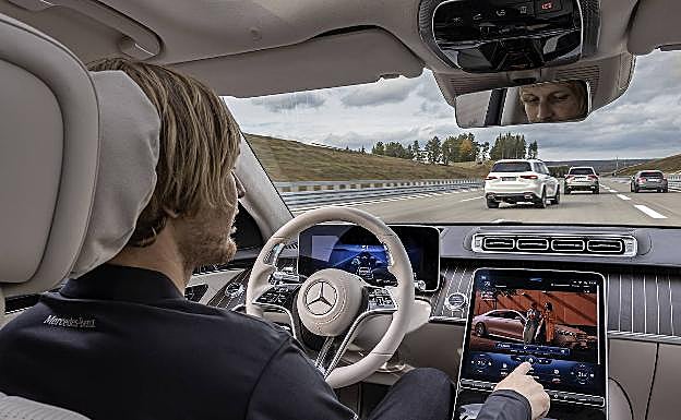 Y es que el objetivo principal de la marca alemana es que «estés cómodo en el coche con toda la seguridad de que disponemos. Por ello, en la segunda mitad del año que viene introduciremos el sistema Drive Pilot, que será nuestro primer sistema de conducción autónoma de nivel 3 en las carreteras de Alemania«, desvela Struck, quien, concretamente, explica que, por ejemplo, »nos encontramos en un Clase S equipado con Drive Pilot y nos encontramos con un atasco. En cuanto el coche detecta el atasco y nos encontramos en las cercanías de los demás vehículos y dentro del rango de velocidad, me ofrece activar este sistema de conducción autónoma. Solo tendré que presionar uno de estos botones, recibo una confirmación luminosa, alrededor del volante y en la pantalla del cuadro de instrumentos, y entonces podré dejar que me lleve«.
