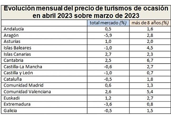 En el caso de las unidades que superan los 8 años, los precios han tenido un mayor crecimiento, del 4,3% en abril en términos anuales, con una media de 9.756 euros. Respecto al mes anterior, el alza ha sido también mayor, el 2,2%.