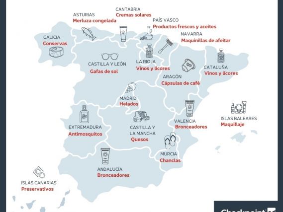 Por su parte, en Galicia destacan las conservas y los quesos, en las Islas Baleares el maquillaje y los productos cárnicos frescos y en el País Vascos, los productos frescos y los aceites.