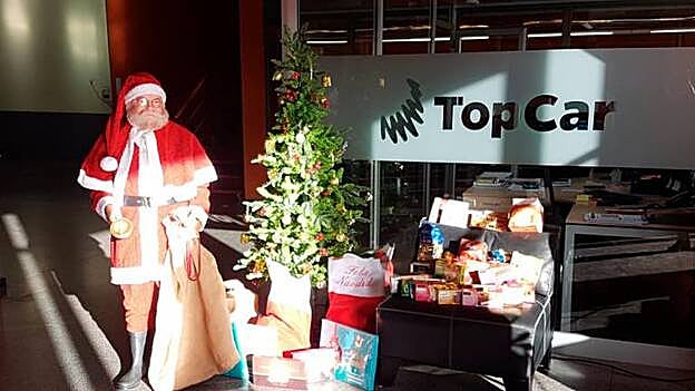 Los empleados de la empresa TopCar han recibido en sus instalaciones al Papa Noel más solidario, uniéndose así a la campaña solidaria “por un cacho de turrón”.